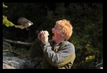Tim and I hiked up Snoqualmie Mountain from the Alpental parking lot off the I-90 west exit at Snoqualmie Pass. We started up at 1:00PM following a rough trail up steep woods, talus and avalanche brush, then scrambled up the streambed to the valley between Cave Ridge and Snoqualmie Mt. A family group of gray jays escorted us up to the waterfall ledges and shared our lunch. In the valley we found a big avalanche deposit from last winter capped with a couple inches of new snow. We hiked up to the head of the valley then up to and over the craggy ridge which runs E from the summit. Cold and snowy up there. On the ramp behind the ridge we photographed four ptarmigan, their mottled plumage perfectly matching the snowy rocks. We lingered a few minutes on the summit then took the trail down the south ridge, reaching the parking lot just before dark at 7:00PM.