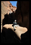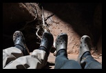 David and I hiked Buckskin Gulch from the Middle Route access point on a sunny day in mid-March. The scramble down sandy ledges into the canyon was way scarier than I remembered from two years earlier. Once in the canyon we spent about 7 hours hiking downstream 4 or 5 miles and back again, mostly in ankle-deep opaque pinkish-brown water. We stayed dry in chest waders and Crocs. Quicksand, fortunately never more than knee-deep, ate our Crocs from time to time. Spectacular scenery - we each took hundreds of photos. The tripod came in handy, and gloves would have been nice too. Though in the low 60's overhead, the temperature in the deeper sections of the canyon was closer to 40F.