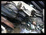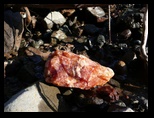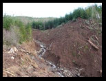In January 2009 a landlide and mudflow swept down one of the tributaries of Lucas Creek terminating in an enormous logjam. The mudflow stripped away all the vegetation and much of the topsoil from nearly two miles of the stream valley, exposing and reworking the gravel which contains most of the agate. Numerous large agate nodules, geodes and chunks of seam agate were exposed. Rockhounds were quick to discover the treasure-trove; during the two weeks following the flood, considerably more than a ton of agate was removed from the upper branches of Lucas Creek with most of that coming from the landslide fork. Little if any of that agate was found by digging - we carried shovels to fish agates and possible agates out of deeper water and to pry partially-exposed agates out of the gravel. Photos in the creek were taken over the course of half a dozen trips during January and February 2009.
