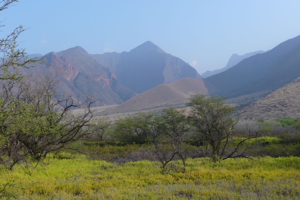 West Maui mountains above Olowalu. The tops of these mountains are generally shrouded in clouds except when the tradewinds stop blowing.