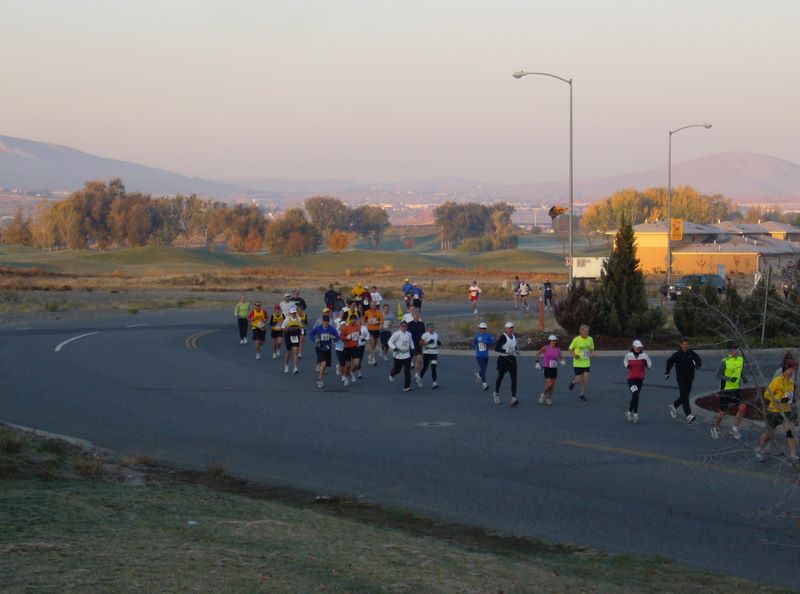 After a mile we start up the ramp to the I-282 bridge, the first of four bridge ascents on the otherwise flat course.