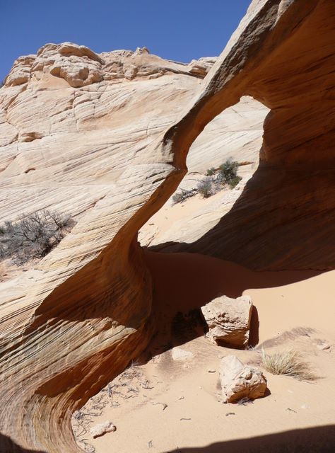 Secluded sandstone bowl about a mile north and a little west of the Wave. Although this is not far of the route in to the Wave, I don't think many people venture up here.