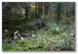 Gus found me as I approached the digging area down in the woods north of the lookout. Pat was already deep in a hole, only his head and shoulders showing above ground with a big pile of rocks and dusty soil behind him. He hadn't found much yet but had cleared out an area a couple feet across and four feet deep. I set to work clearing out a hole just uphill from his, a promising spot with a wide exposed bank to work at. By the time we quit for the day we'd worked about three hours and I had several good-sized eggs and a handful of smaller ones. Pat, demonstrating once again his remarkable knack for picking good holes, had about twice as many eggs as I did.