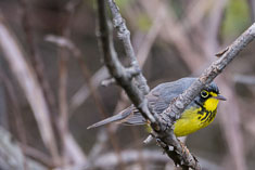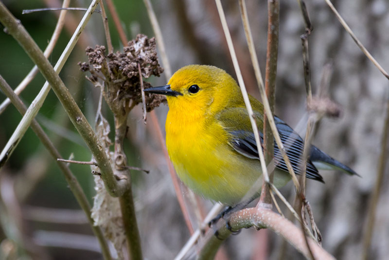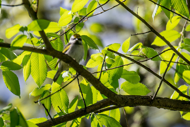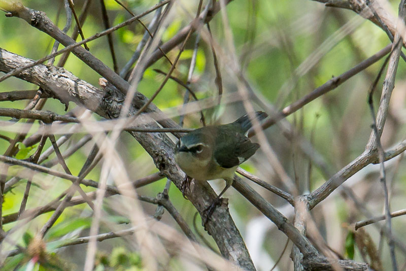 where the warblers were. Low light tends to require shooting at high ISO values (grainy images) with