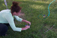 field and plows a straight path over Mom's flower garden in front of the low boulder, and into a
