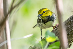 singing Black-throated Green Warbler in what looks like a Cedar tree. Seeing that treetop warbler