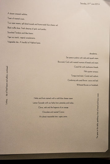 marshmallows made with pig's blood when it was our turn. Though the menu was somewhat different for