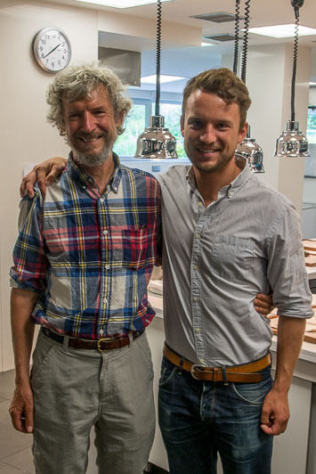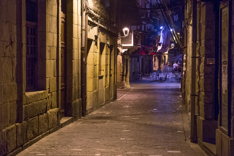 The descent into the fjord-like harbor of Pasaia at sunset (around 10PM) was particularly spectacular. We took a little passenger ferry across to the village of San Juan, a cluster of old multi-story stone houses clinging to the steep shore, lining and sometimes spanning the single main street along the harbor. Rather different from the coast of Maine though we did split 3 lobsters (of sorts) for dinner. The claws were as skinny as straws but the tail meat was delectably sweet. By the time we finished supper it was after midnight and the thunderstorm that had earlier threatened to dump on us had finished dumping and moved on. We were too late for the ferry and bus so had to take a 20 euro taxi ride back to San Sebastian. During the ride Daniel chatted comfortably with the taxi driver; he's become essentially fluent in Spanish and has picked up a little Basque as well. By New Hampshire time we went to bed reasonably early.