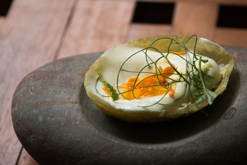 threads, octopus tentacles with beef sauce, cod tongues with caviar and cubes of lard. Only one
