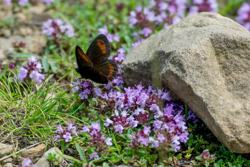 We saw butterflies too, at least six kinds mostly down in the woods though most of the flowers were up in the high country. They were numerous up there and we saw at least twenty different species despite the intense grazing pressure from sheep.