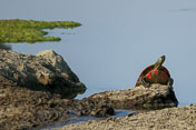 It felt like the good old days, birding with friends. We did not hear Boreal Owls at Ahtanum Meadows; Andy suspected that the full moon was the reason the owls stayed silent. We did not find the White-throated Sparrow previously reported at the Arboretum but we did see a much rarer bird, a hybrid White-throated X White-crowned Sparrow. We toured the fragrant sewage lagoons near Prosser and spotted a handsome Painted Turtle at Kerry's Pond along with 14 Killdeer. At sunset, on Andy's suggestion, we stopped by Konnowac Pass just south of Moxee and walked about a quarter-mile up a gravel road into the dry grassland to listen for Gray Partridges calling. And heard them! #300. We saw two flocks, about 20 birds, as they flew up into taller grass for the night but it was too dark for photos.