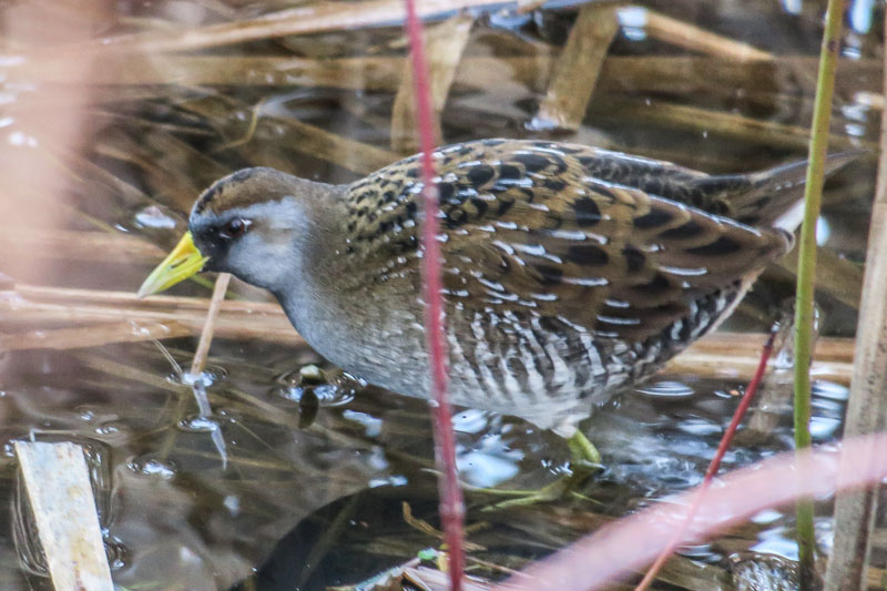 This afternoon we drove over to Green Lake to try to see the Sora which has returned to the southwest corner of the lake for the second winter in a row. The closest parking is more than a quarter mile away so I wasn't sure I could make it but it went okay. Quite a few people were out walking around the lake and a handful of them, aware of reports of the little rail, stopped to look for it. Most of us wore masks and we tried to stay 6 feet apart. Collectively we found the Sora after several minutes of searching. Once again I was surprised at how small it is, not that much bigger than a sparrow and very cute as it paced deliberately through the cattails, apparently oblivious to the attention it was receiving.