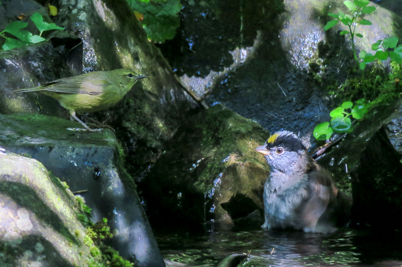 around us, a mix of chaparral with oak and pine trees, were in the shade and the birds were mostly