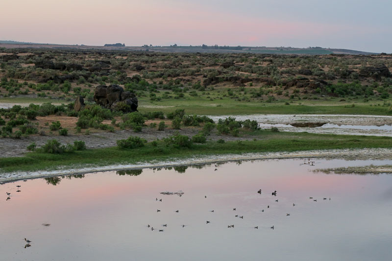 We drove over to Ellensburg on Wednesday night and picked up a Western Screech Owl at Roza in the canyon before bed. In the morning we were out shortly after sunrise, birded the Old Vantage Road down to Vantage, stopped by the dramatic canyon of Frenchman Coolee and spotted a distant and silent but probable Sage Thrasher in the flats before wasting a couple of hours following up a tip from Maxine about a Burrowing Owl at the Quincy STP. We did find them a little later at the north edge of the airport in Pasco. A single White Pelican at the Walla Walla River delta and some Horned Larks in 9 mile Canyon were our fifth and sixth new birds for the day. The Ferruginous Hawk nest platform was vacant. Darchelle had booked a room at the Walla Walla Garden Motel and we pulled in at dusk, too tired for visiting. It was a nice place, not least because our room featured a photo of a Victorian mansion which looked remarkably like the Bruce Mansion in Waitsburg, where we got married.