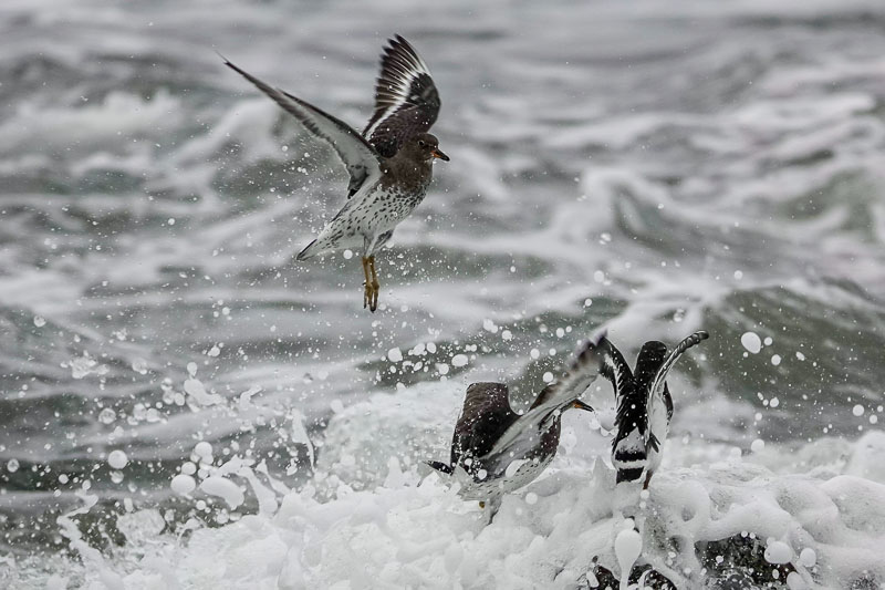 Again this year we featured Rockpipers, in this case Surfbirds and a Black Turnstone which Darchelle photographed at Ocean Shores in early February, on our March calendar page. Reusing the subject for a second year saved us the trouble of rewriting the caption.