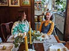 With no more birds to chase around the state (we have seen them all already this year), we have been staying at home. We get up around 8. Darchelle wheels me out to the kitchen and asks me what kind of coffee I want then grinds the beans, fits a paper filter into our ceramic drip cone and runs hot water from our Zojiroshi onto the grounds. At that point I can sometimes pick up the fragrance of the freshly ground coffee through my ventilator but more often, I smell nothing. It is an irritating feature of the ventilator that the intake filter strips almost all odors, good and bad, from the air that I inhale. Darchelle retrieves a slender stainless steel straw from a small tray by the sink and offers me a sip of the fresh brew. It is one of the highlights of my day. I prefer coffee black and very strong, almost like espresso, so Darchelle usually gives me just the first one or two runs of water through the beans. She then pours extra water from the Zojiroshi through the grounds to make what we call the "dredges", which she will sometimes drink herself with a little cream and other times share with me if I run short.