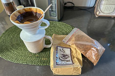 This morning Darchelle brewed up some of the special Civet cat poop coffee which our neighbor Z