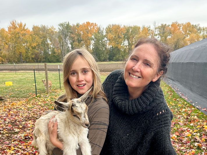 Katie and Darchelle with goat, Frog Hollow Farm (11/03/2025)