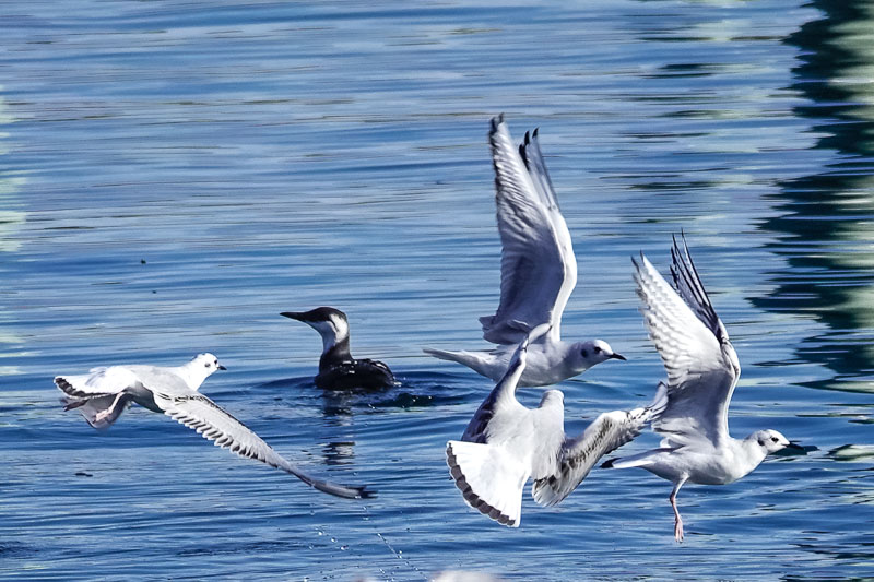 Bonaparte's Gulls and Common Murre, Sekiu (10/15/2025)
