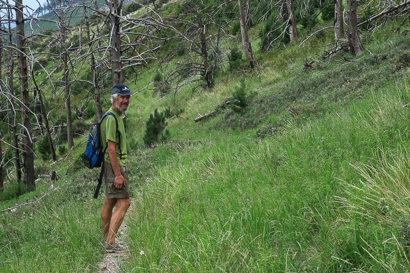 Brian in burned pine forest on Super Trail, Mount Wrightson AZ (08/08/2015)